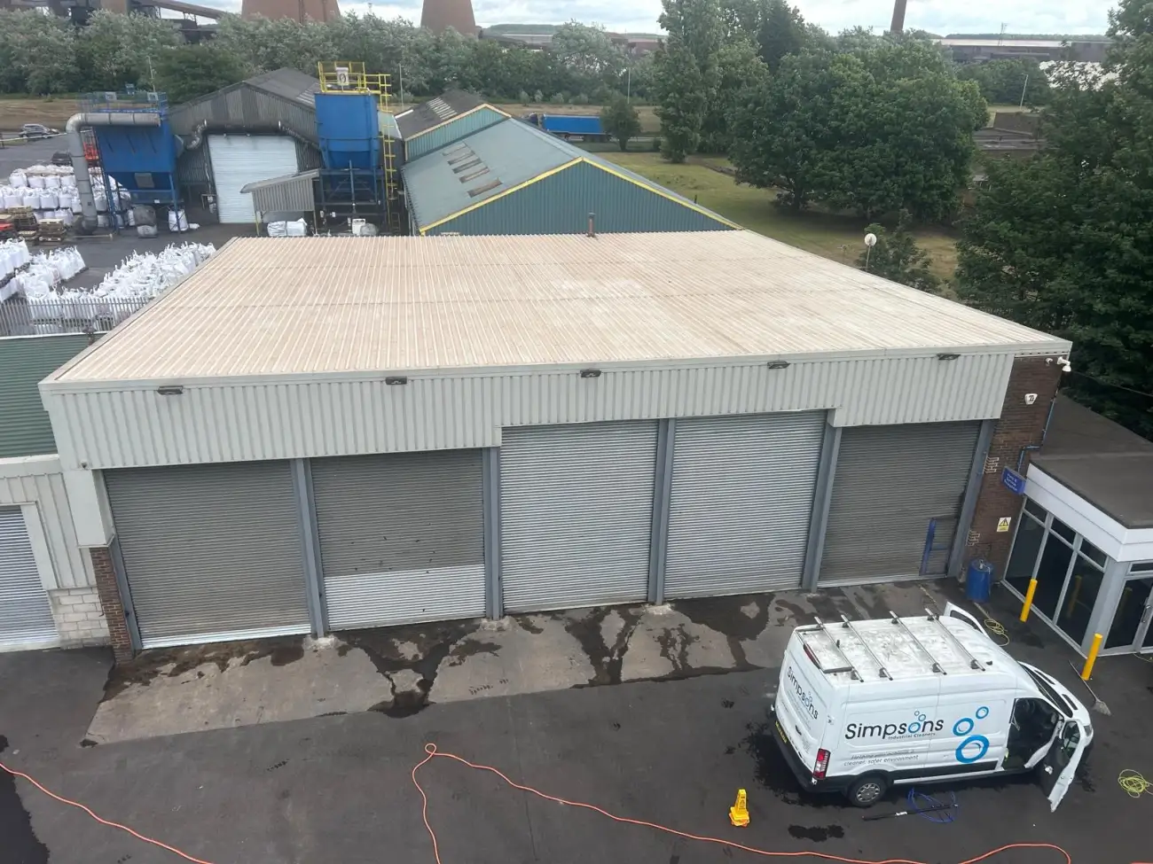 Cleaning of Warehouse roof , cladding and guttering using access machine.
